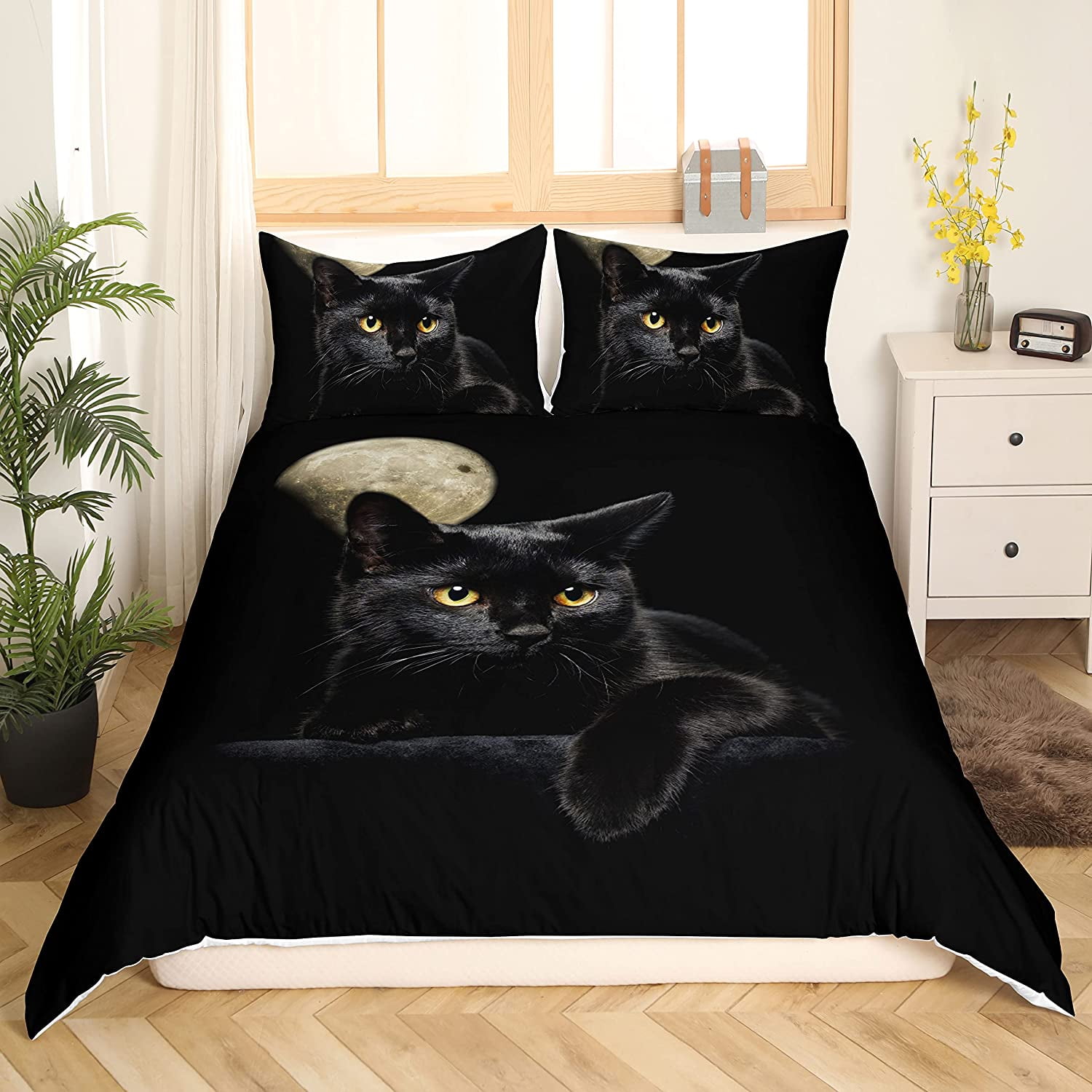 Cat Bedding For Girls Boys Cute Black Cat Pattern Bedspread 3 Piece Black Animal Print Decorative Duvet Cover Set Full Size Farmhouse Cats Decor Comforter Cover 2 Pillowcases Walmart Com