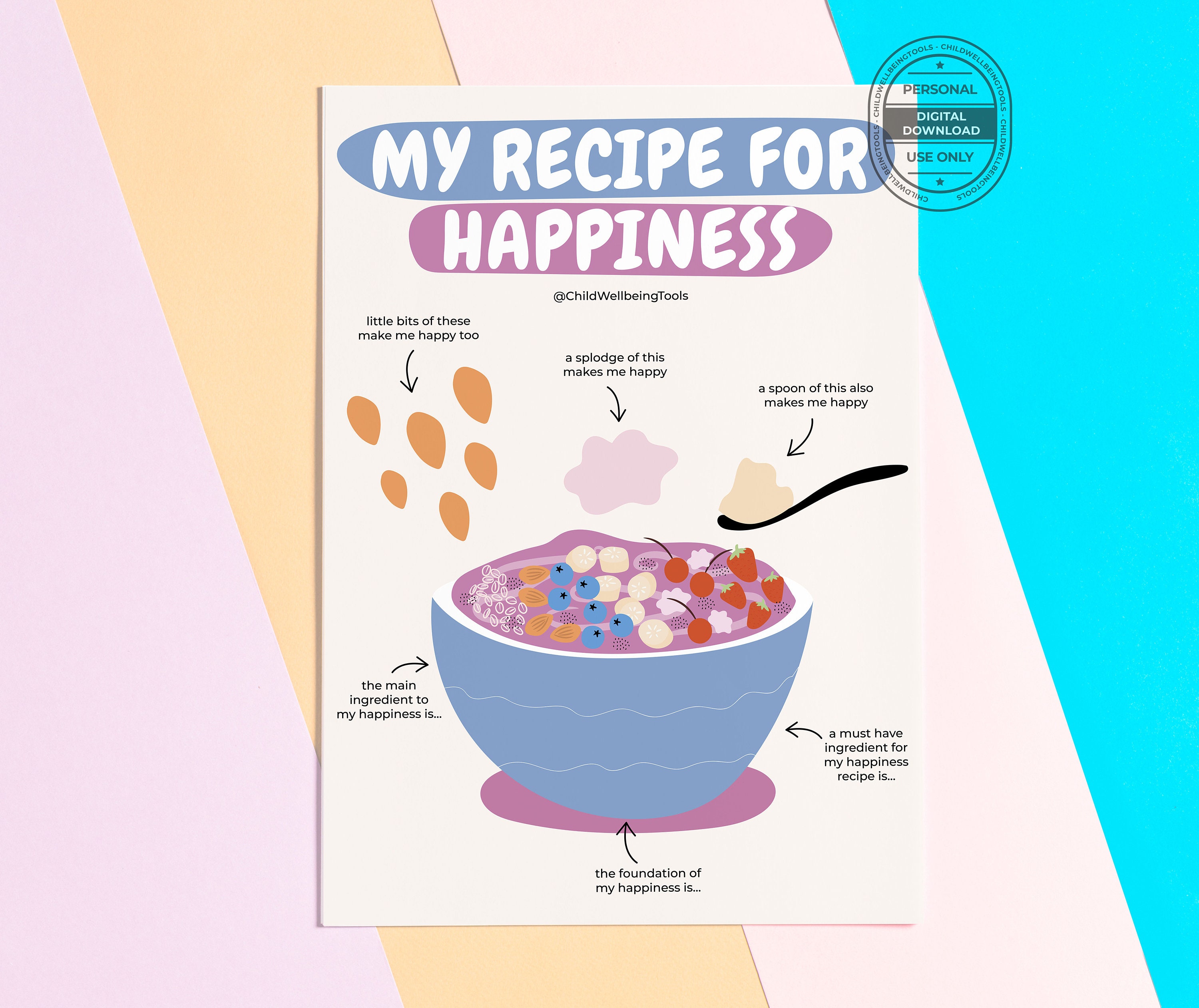. In following this recipe you are bound to. On this page we will provide you with a Recipe For Happiness Worksheet. Write about a fun day spent with friends a good movie.